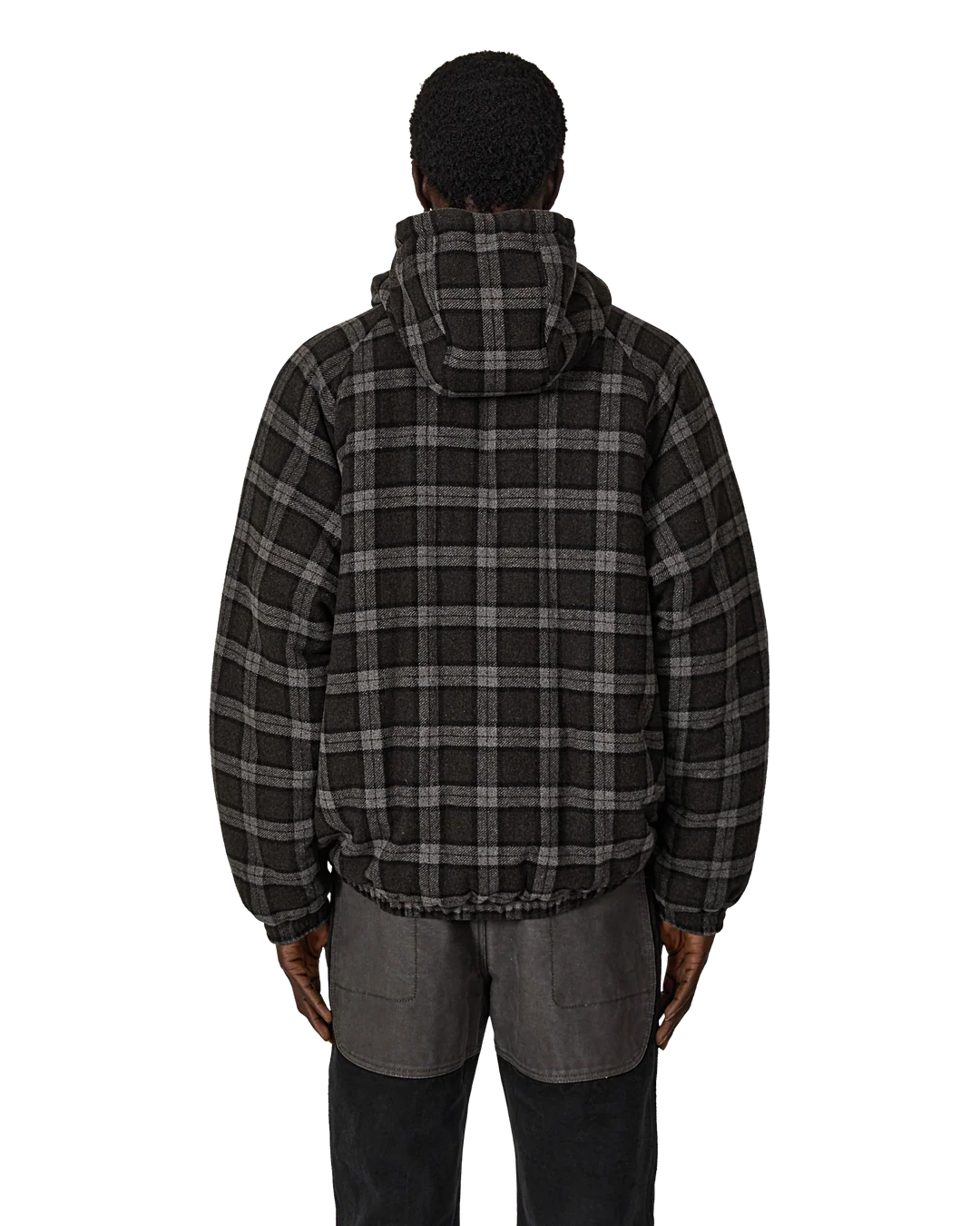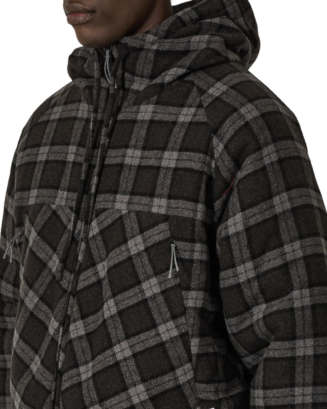La giacca a quadri in lana PrimaLoft® di colore antracite e nero è realizzata in flanella di lana a quadri e imbottita con imbottitura PrimaLoft Gold da 100 g/m², che offre calore leggero, impermeabilità e traspirabilità per un comfort ottimale in condizioni di freddo. La vestibilità squadrata garantisce facilità di movimento, mentre il cappuccio e l'orlo regolabili consentono una vestibilità personalizzata. Dotata di ampie tasche anteriori con zip e polsini elasticizzati, questa giacca è rifinita con il logo ROA ricamato sulla tasca anteriore.