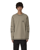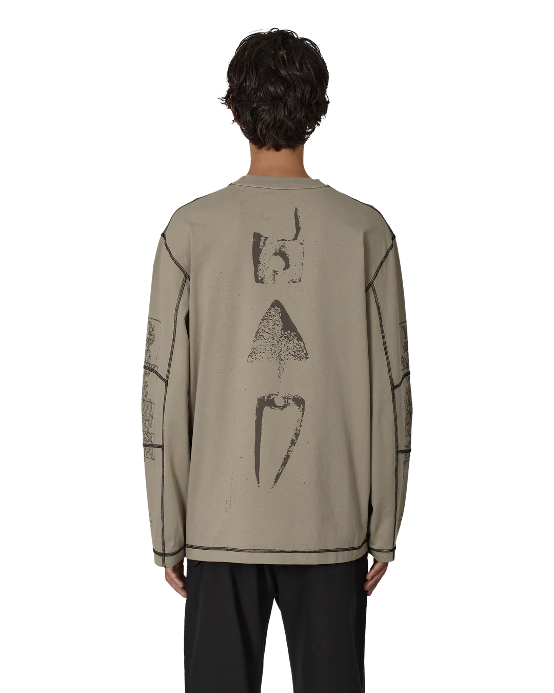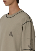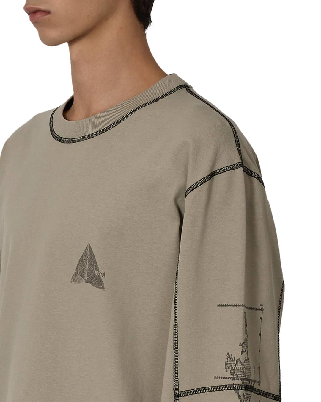 T-shirt grafica a manica lunga realizzata in jersey di cotone biologico pesante, colore verde chiaro. Stampa a contrasto sul davanti e stampa sul retro in colore cordino elastico. Colletto a costine.
