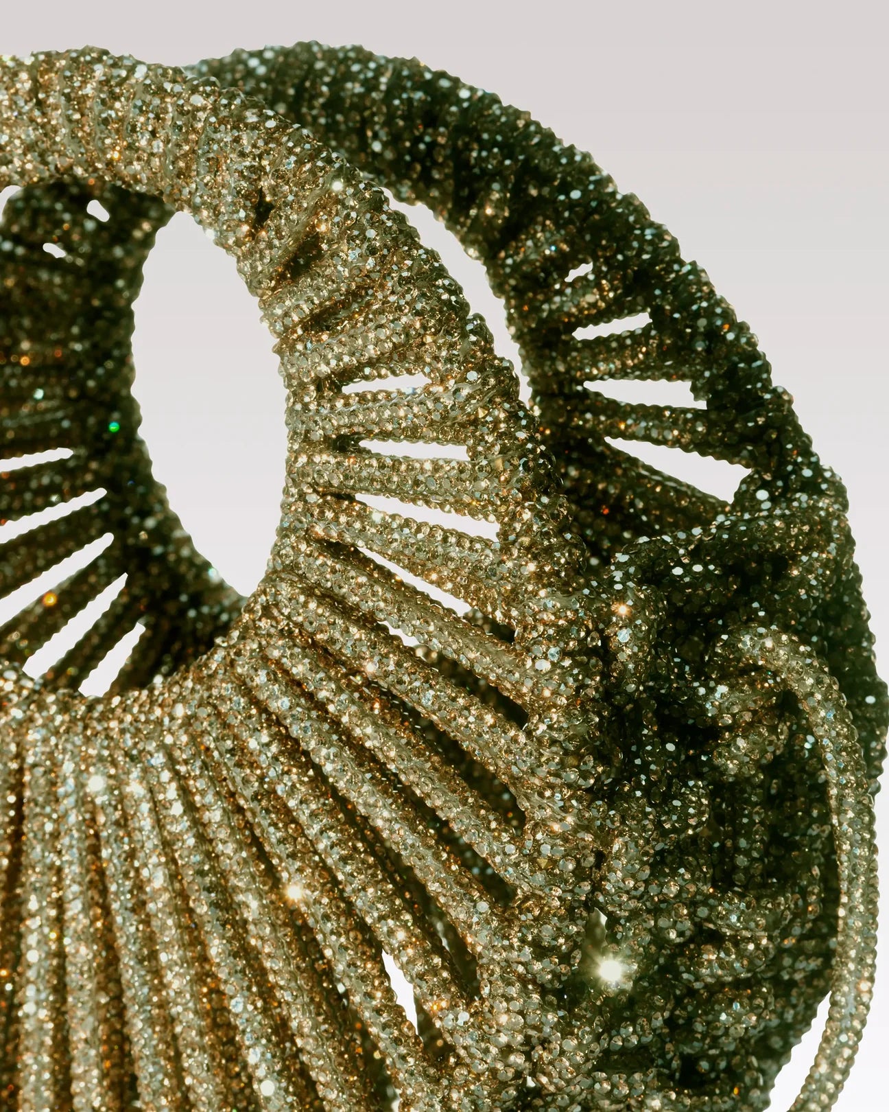 La borsa gioiello Jaya unisce artigianalità e design contemporaneo in una forma compatta e raffinata. Realizzata interamente a mano, esprime un’eleganza luminosa e moderna. La versione mini, pensata per essere indossata a tracolla, è l’alleata perfetta per aggiungere un tocco di luce ai party e alle occasioni speciali.
