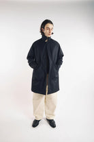 Cappotto antipioggia progettato per combinare protezione avanzata e comfort sia in ambienti urbani che outdoor. La manica raglan e la chiusura frontale con bottoni automatici conferiscono al design un aspetto pulito e formale senza sacrificare funzionalità e praticità. Le tasche applicate con patta e doppia entrata creano un equilibrio tra estetica essenziale e praticità, mentre i polsini con chiusure interne antivento, regolabili tramite bottone automatico, garantiscono comfort termico e ulteriore protezione.