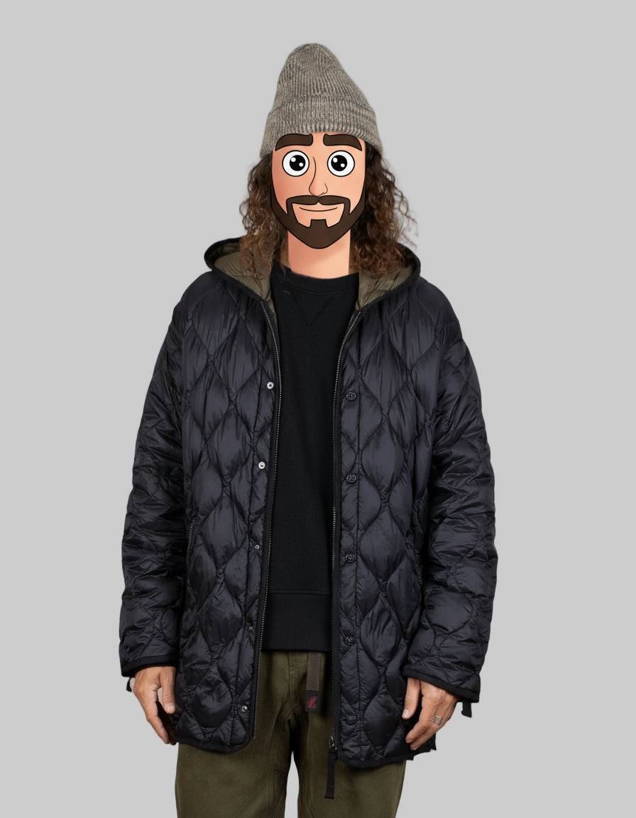 La  giacca in piumino Military M65 Liner W-Zip di TAION fonde tradizione militare e innovazione tecnica in una silhouette contemporanea con una vestibilità leggermente oversize. Realizzata in softshell leggero e idrorepellente , è imbottita con piumino 800 FP , che offre un calore ottimale pur rimanendo comprimibile e leggera. Dotata di cappuccio, questa giacca offre ulteriore protezione dagli elementi. La sua vestibilità ampia consente di indossare facilmente più strati, mentre le aperture laterali con cerniera offrono maggiore libertà di movimento. La cerniera bidirezionale consente di regolare l'apertura in base alle esigenze e le tasche applicate offrono un comodo spazio per riporre gli oggetti.
