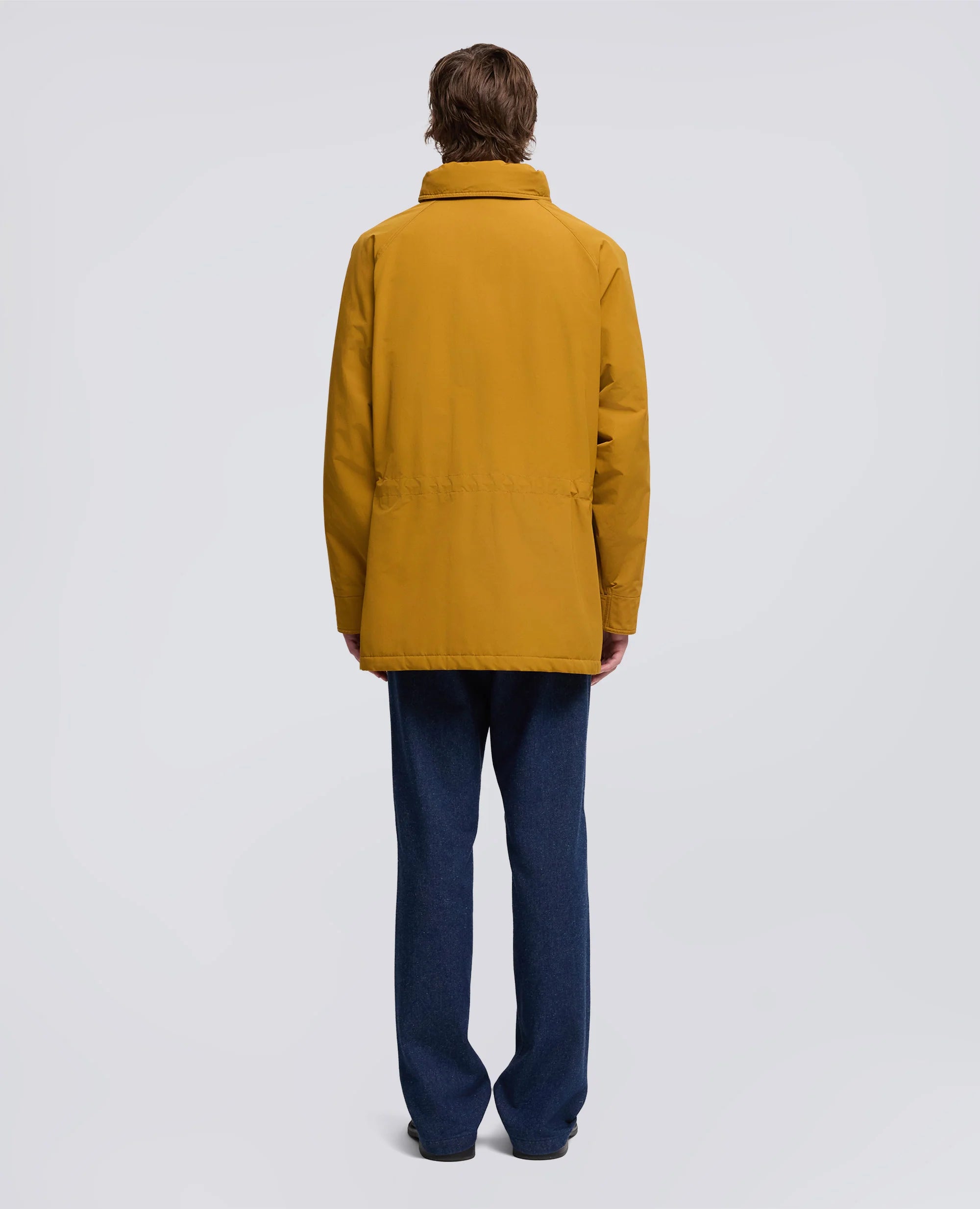 Giubbotto trapuntato realizzato in morbida e resistente tela di misto cotone idrorepellente e imbottito con ovatta Thermore. Il modello, dotato di un pratico cappuccio regolabile con coulisse e rimovibile con zip e di una vita con elastico e coulisse interna, e rifinito dalla lunetta in velluto all'interno del collo ripiegato. Il capo e caratterizzato da chiusura frontale con zip e bottoni a pressione nascosti e da quattro tasche applicate con patta e bottoni a pressione anch'essi nascosti. Il giubbotto e rifinito dal tirazip personalizzato con logo Aspesi e dall'alamaro sui polsi con bottoni