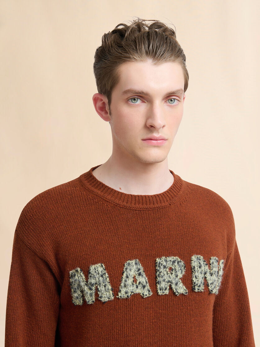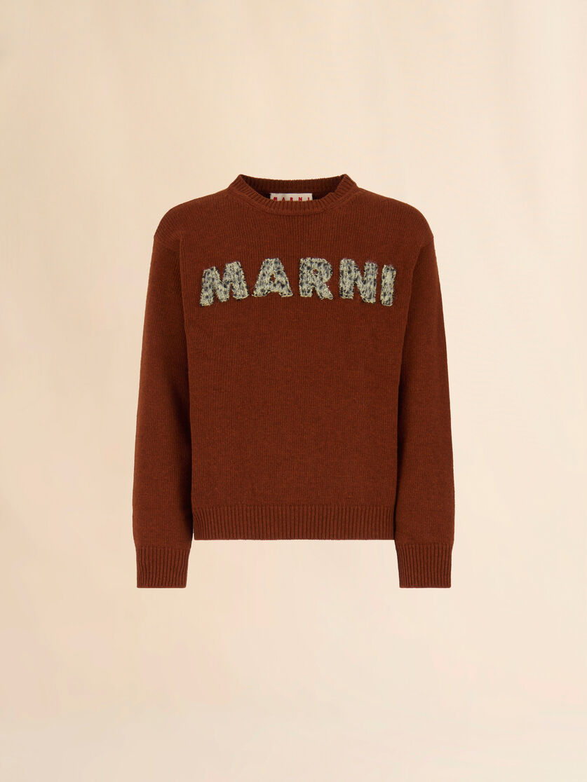 Maglia in lana spazzolata dalla mano morbida. Personalizzata con logo Marni a contrasto tagliato al laser sul davanti. Vestibilità regolare con maniche lunghe e finiture a costine.