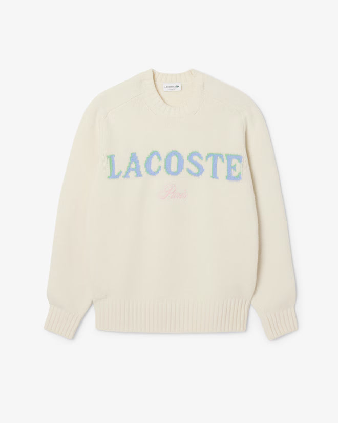Marchio Lacoste in maglia intarsiata, ricamo Paris sul petto