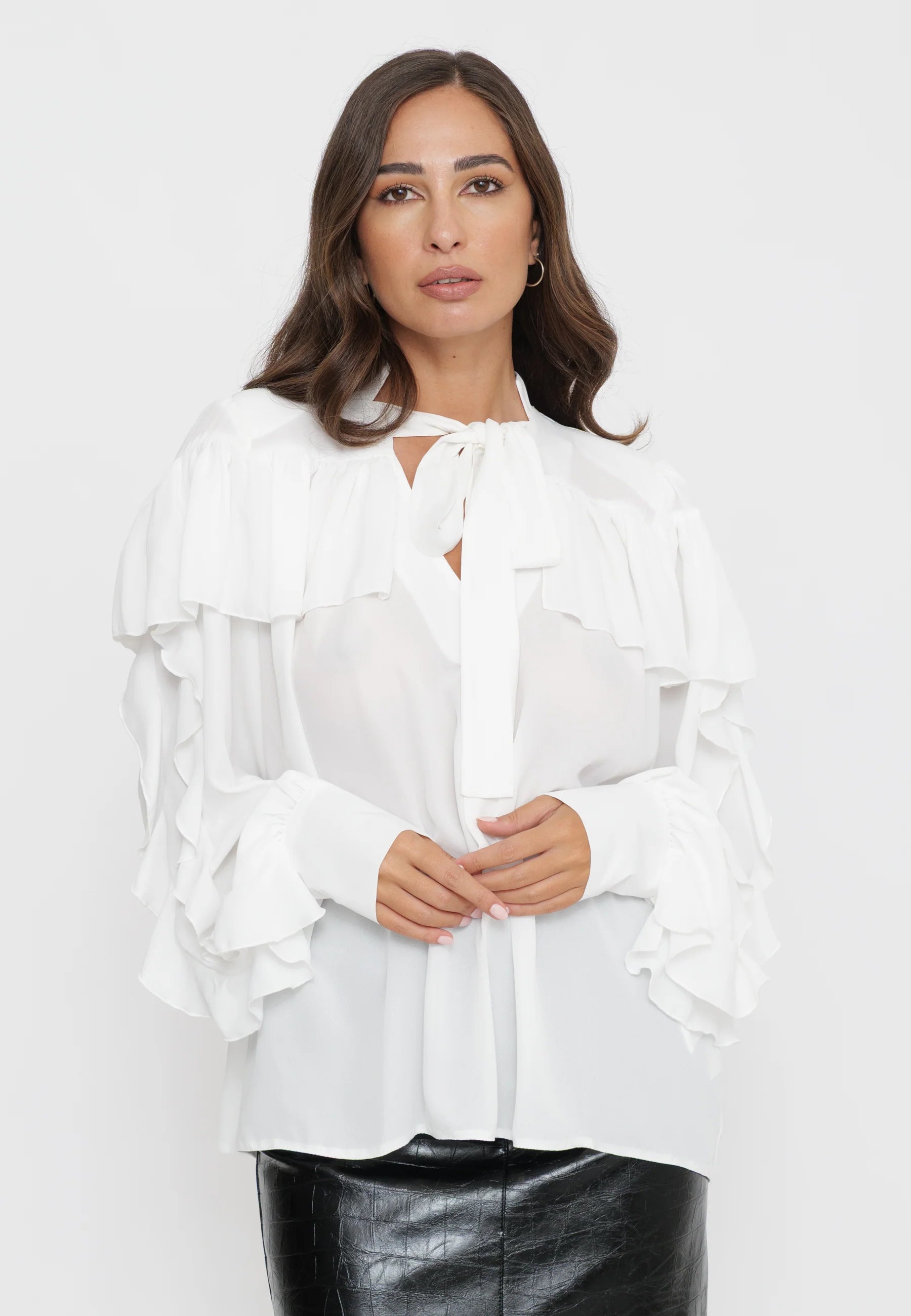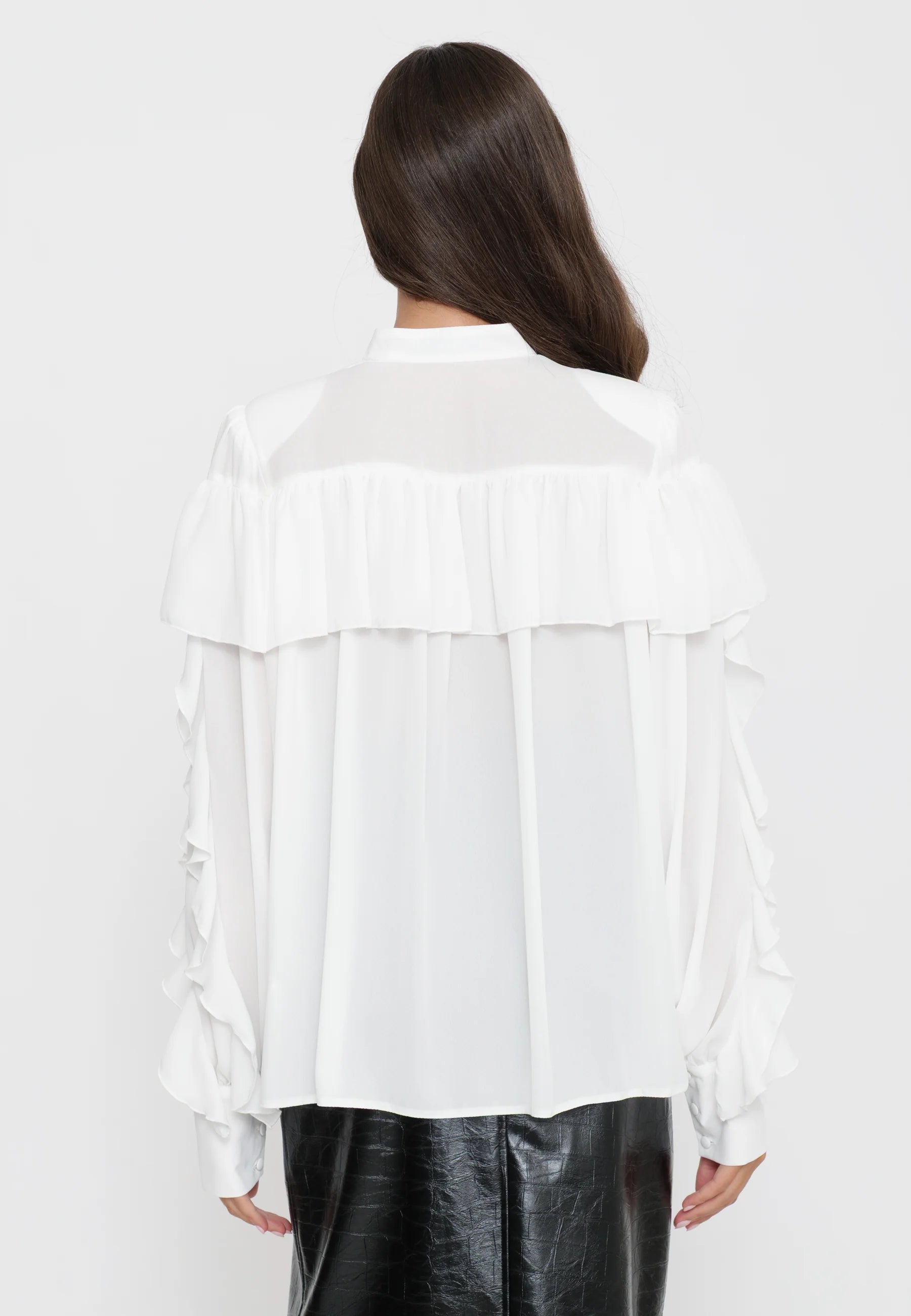 Camicia bianca con balze e fiocco