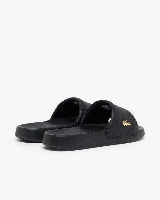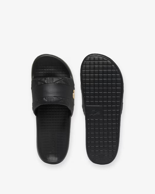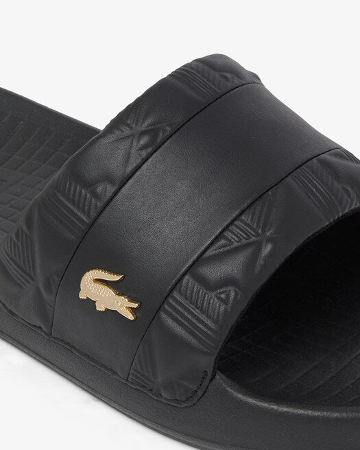 Le Serve Slide Hybrid sono una sofisticata variante delle iconiche ciabatte Lacoste. Un mix di stile audace e comfort, con iconico monogramma in rilievo e coccodrillo metallico dorato sul cinturino. Un must per l'estate con eleganti dettagli del marchio.