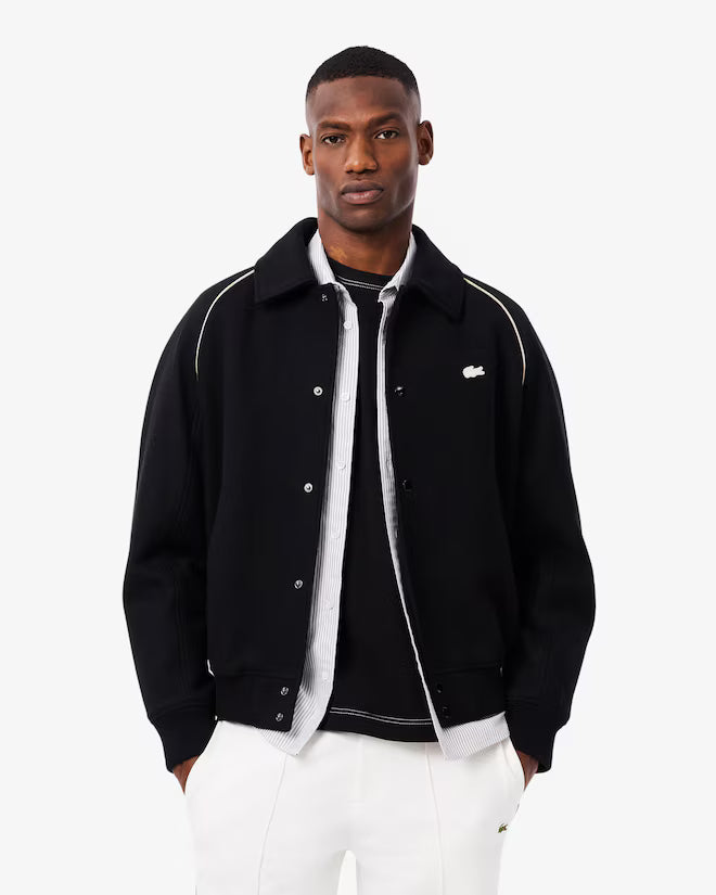 Una rivisitazione elegante ed esperta della giacca varsity di Lacoste. Realizzata in lana di alta qualità con imbottitura leggera per il calore, rifiniture iconiche a contrasto e un'ampia targhetta con marchio per uno stile audace. Un capo sofisticato, con comode tasche e dettagli a coste.