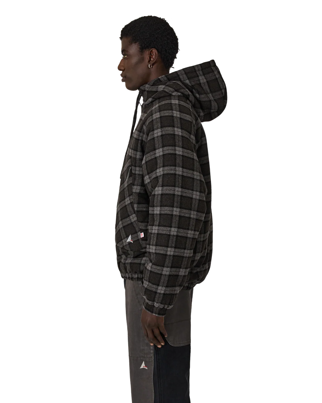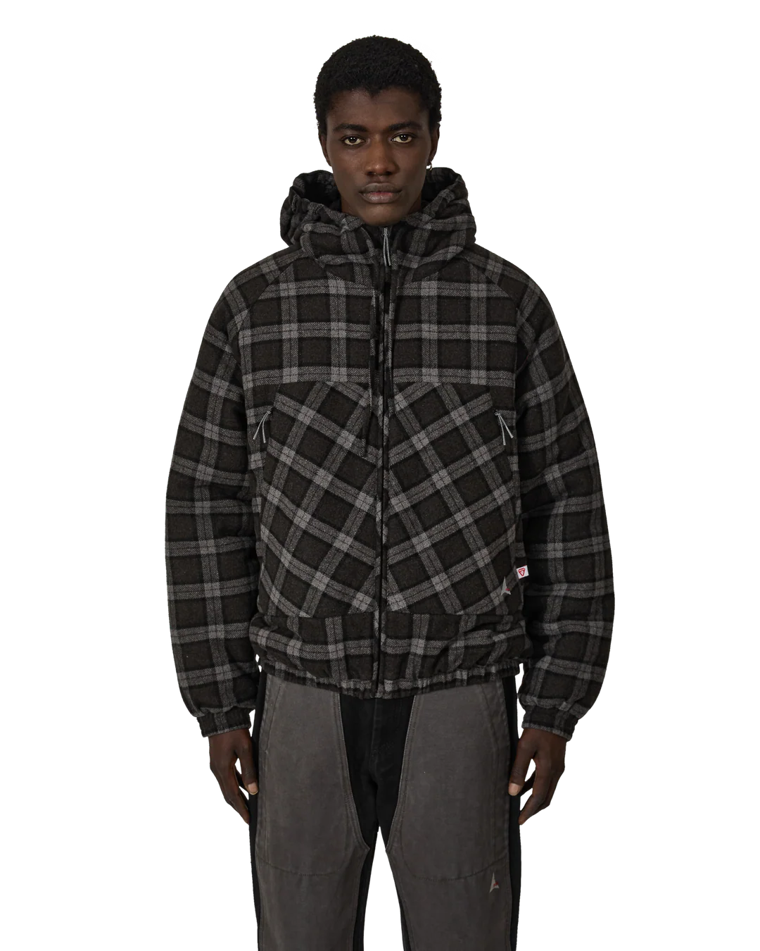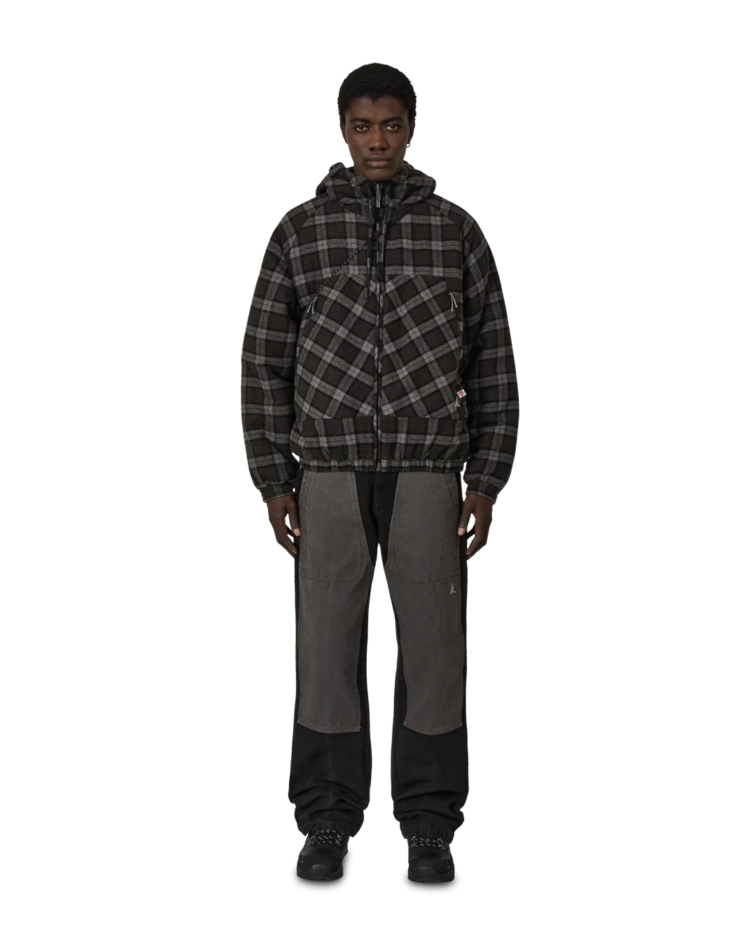 La giacca a quadri in lana PrimaLoft® di colore antracite e nero è realizzata in flanella di lana a quadri e imbottita con imbottitura PrimaLoft Gold da 100 g/m², che offre calore leggero, impermeabilità e traspirabilità per un comfort ottimale in condizioni di freddo. La vestibilità squadrata garantisce facilità di movimento, mentre il cappuccio e l'orlo regolabili consentono una vestibilità personalizzata. Dotata di ampie tasche anteriori con zip e polsini elasticizzati, questa giacca è rifinita con il logo ROA ricamato sulla tasca anteriore.