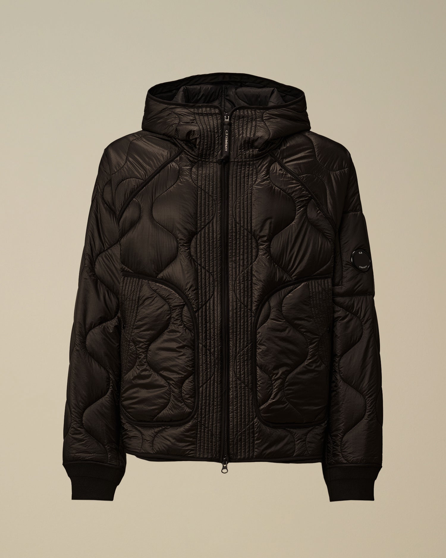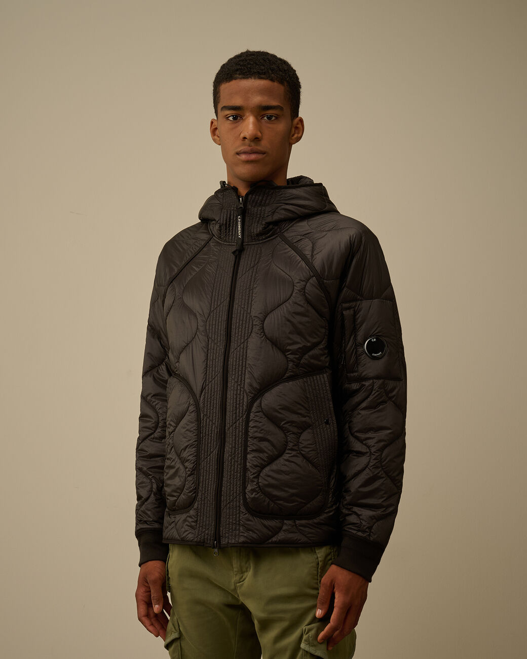 Giacca imbottita realizzata in nylon trapuntato micro-ripstop opaco 7 denari. La leggerezza e la trasparenza del tessuto enfatizzano la struttura del capo. La giacca presenta l'iconica Lente di C.P. Company, una chiusura full zip a doppio cursore, tasche laterali con patta e cappuccio regolabile. Imbottita con ovatta Primaloft® Silver, una soluzione isolante con elevate proprietà termiche e traspiranti. Regular fit.
