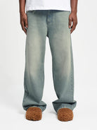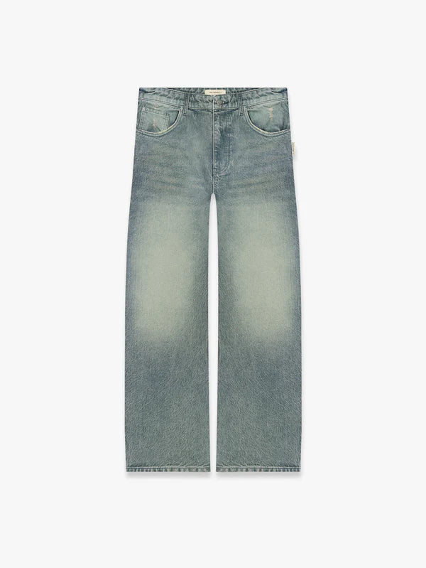 Il nostro Essential Baggy Denim è un capo realizzato in denim azzurro di alta qualità, dal taglio ampio e raffinato. Presenta un caratteristico lavaggio acido e effetti sbiancanti, cuciture decorative distintive sulle tasche posteriori e una cerniera YKK sulla patta. La famosa gruccia metallica completa il prodotto. Pensato per l'uso quotidiano.
