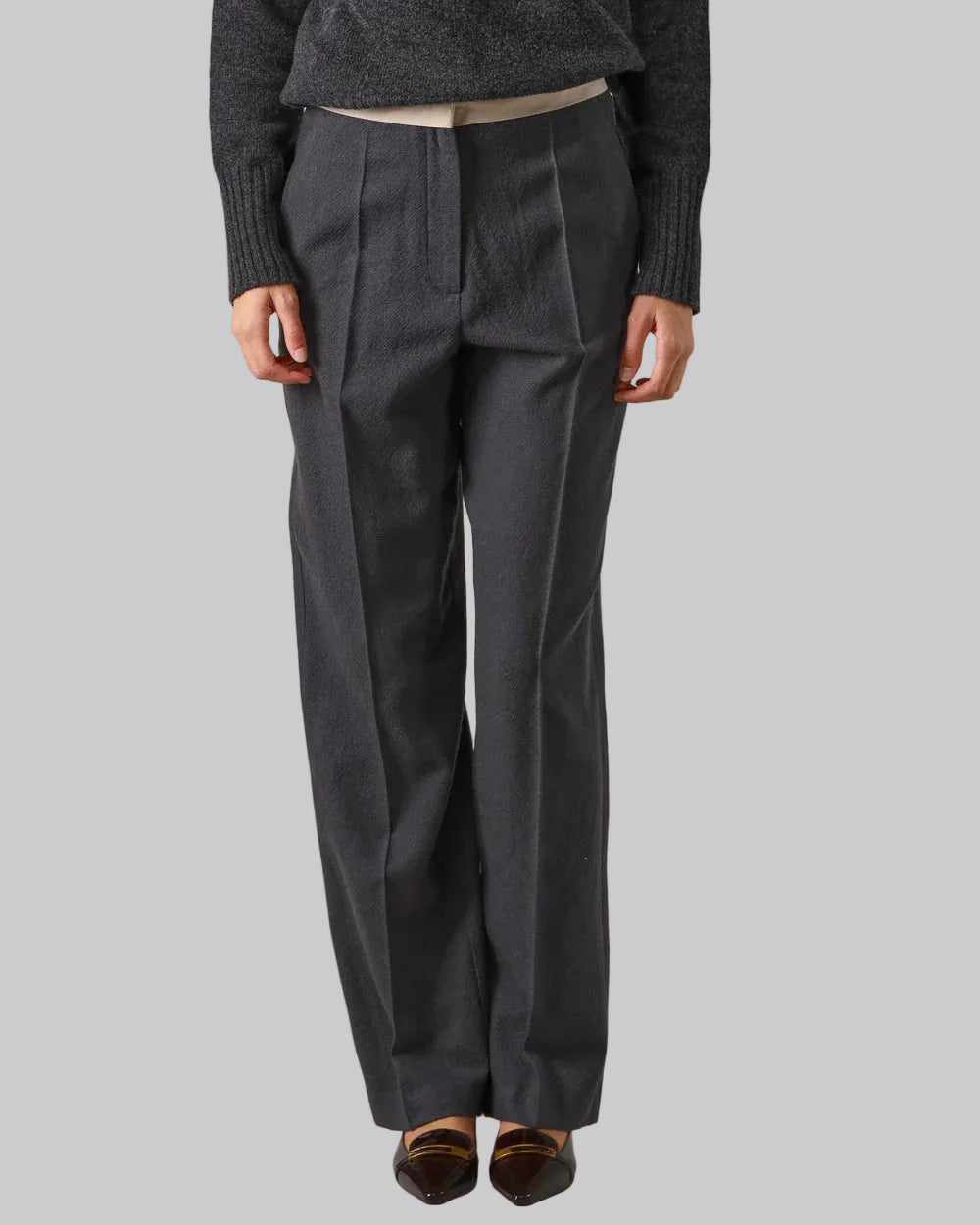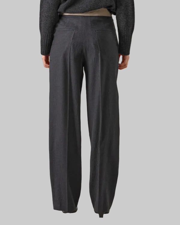 Pantalone grigio soft wool con fascia a contrasto