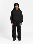I pantaloni della tuta CREATIVE DEPT in nero uniscono un'estetica rilassata a un comfort eccezionale. Realizzati in cotone ultra morbido e pesante, il tessuto offre una sensazione di morbidezza e comfort che rende questi pantaloni un capo indispensabile per tutti i giorni, sia per creare che per rilassarsi. La stampa CREATIVE DEPT in bianco sulla gamba aggiunge contrasto ed esclusività, mentre la silhouette ampia e ampia garantisce libertà di movimento e un look contemporaneo.
