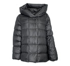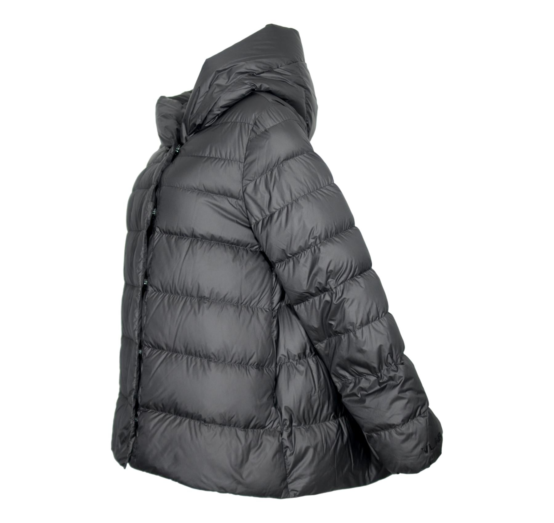 Piumino midi, sagomato in forma A, realizzato in nylon cangiante effetto taffeta. La piega sul retro garantisce una vestibilità confortevole e una libertà di movimento ottimale. Uno stile sportivo chic, adatto a contesti glamour e informali. Modello Mood. Sulla parte anteriore, l'imbottitura in piuma d'oca a iniezione diretta conferisce volume soffice e leggero. Tasche dotate di zip invisibile, chiusura con bottoni a scatto, cappuccio fisso, maniche lunghe con elastico nascosto e logo in camoscio tinta su tinta.