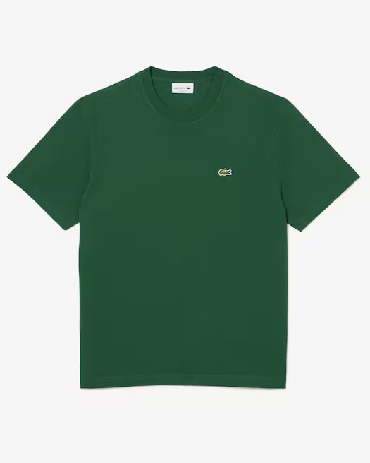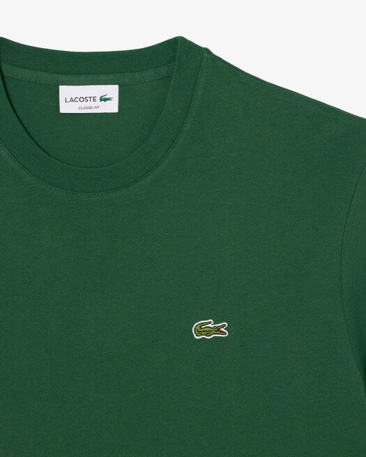 Una nuova versione dell’intramontabile t-shirt Lacoste in comodissimo tessuto di media pesantezza. Un must-have versatile che sta bene con tutto, completato da un iconico coccodrillo.