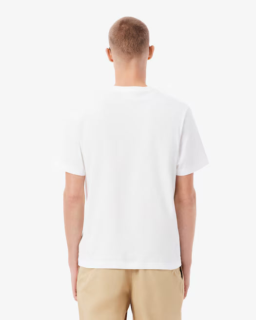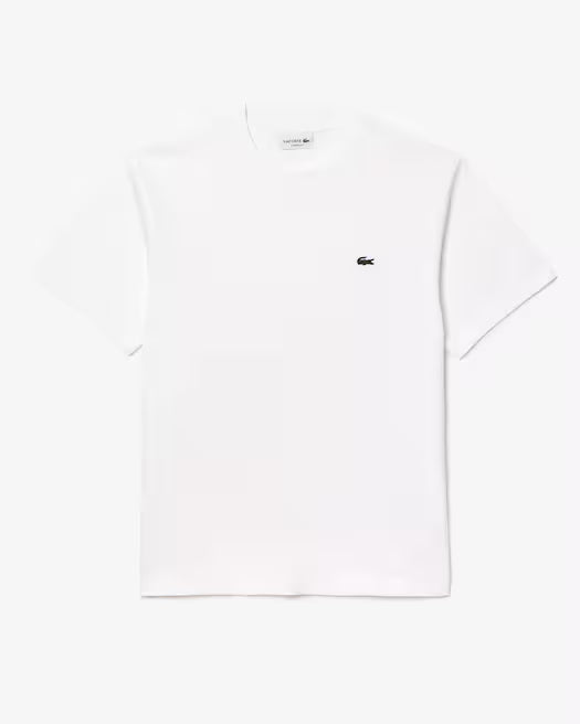 Una nuova versione dell’intramontabile t-shirt Lacoste in comodissimo tessuto di media pesantezza. Un must-have versatile che sta bene con tutto, completato da un iconico coccodrillo.