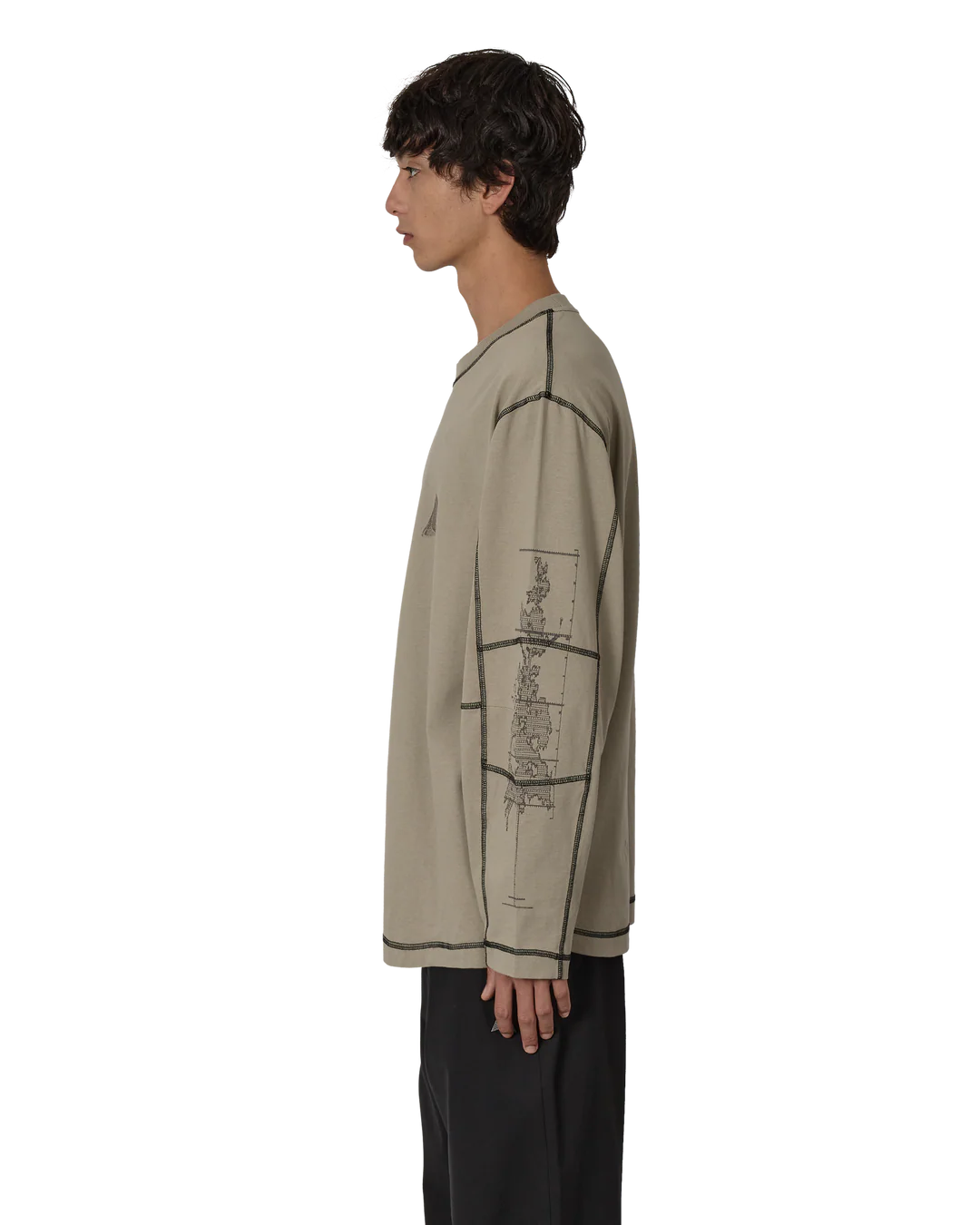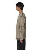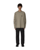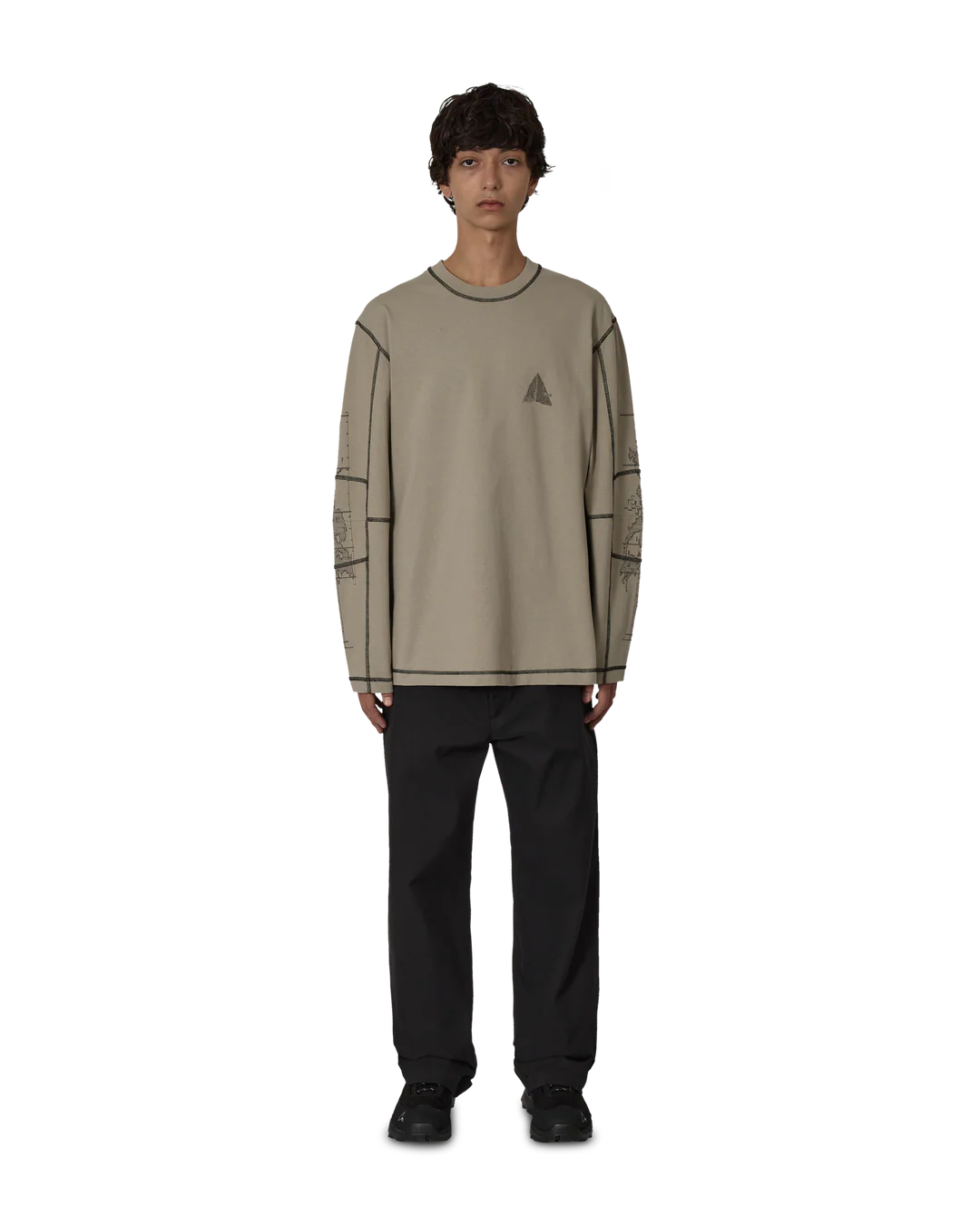 T-shirt grafica a manica lunga realizzata in jersey di cotone biologico pesante, colore verde chiaro. Stampa a contrasto sul davanti e stampa sul retro in colore cordino elastico. Colletto a costine.